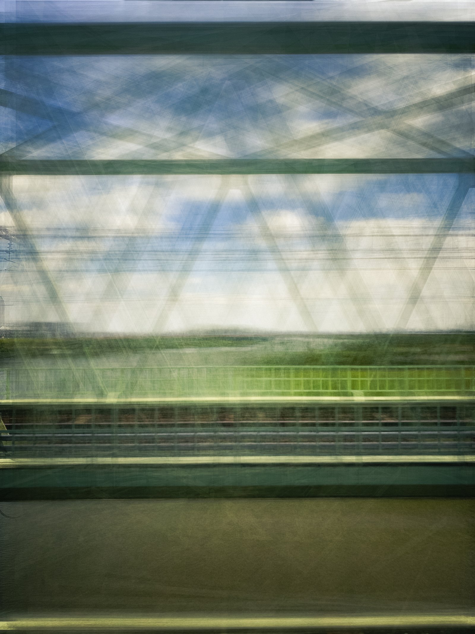 An experimental photograph made from a moving train in the Tokyo area